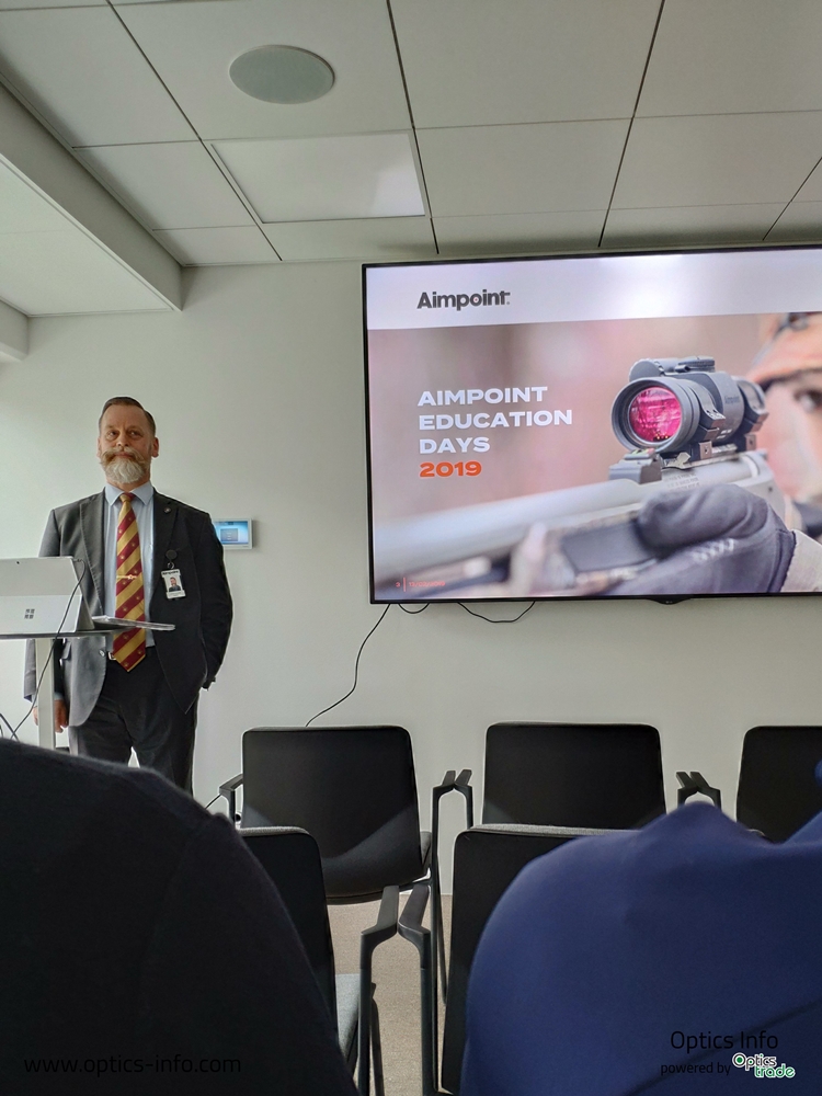 Prvi dan smo preživeli v njihovi tovarni, ki ima sedež v Malmu, si ogledali njihove produkte in se udeležili več različnih predavanj. Izobraževali smo se o zaščiti blagovne znamke Aimpoint ter pravnih vidikih tega področja. Opravili smo tudi izobraževanje o prvi pomoči na višji ravni, ki ga je vodil zelo izkušen zdravnik, ki je vrsto let preživel v Afganistanu in prvo pomoč izvajal tudi na bojišču. Kot darilo smo prejeli posebne pakete prve pomoči, nato pa odšli na ogled same tovarne, ki je bil pod strogim nadzorstvom. Prav neverjetno je, koliko vložijo v razvoj, še posebej za profesionalni program. Najbolj zanimiv del je bil ogled zelo majhnega servisnega oddelka. Vse kar popravljajo, so kakšne stare pike, nove namreč nimajo skoraj nič okvar. Ob koncu dneva so nam dovolili obisk njihovega podzemnega strelišča, kjer testirajo vse nove prototipe. Omeniti je treba, da ima podjetje v lasti zelo veliko zbirko različnega orožja, ki jim služi za testiranje.