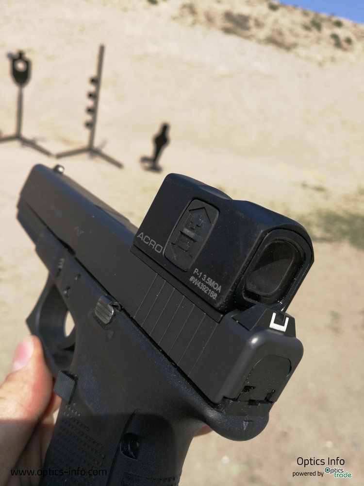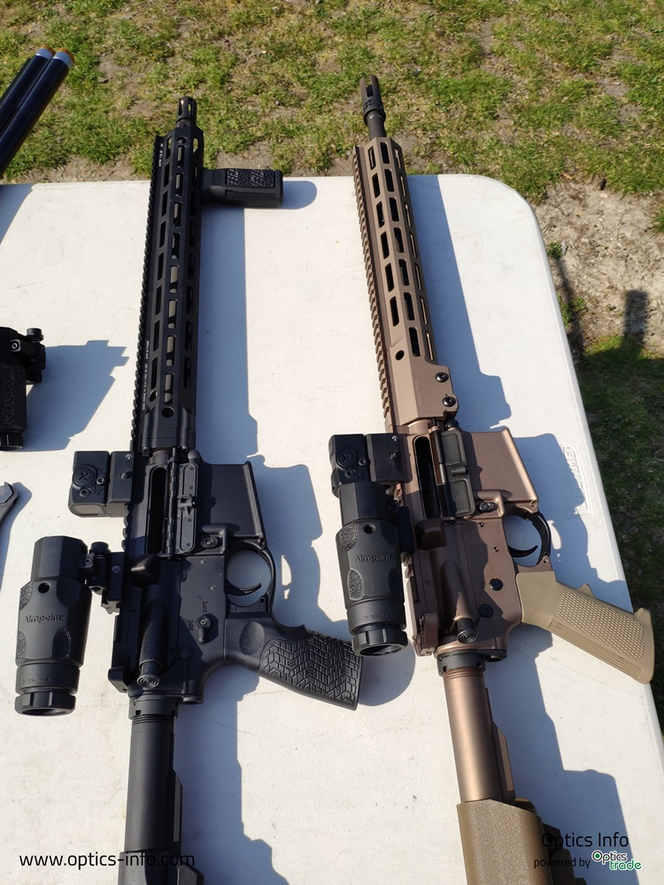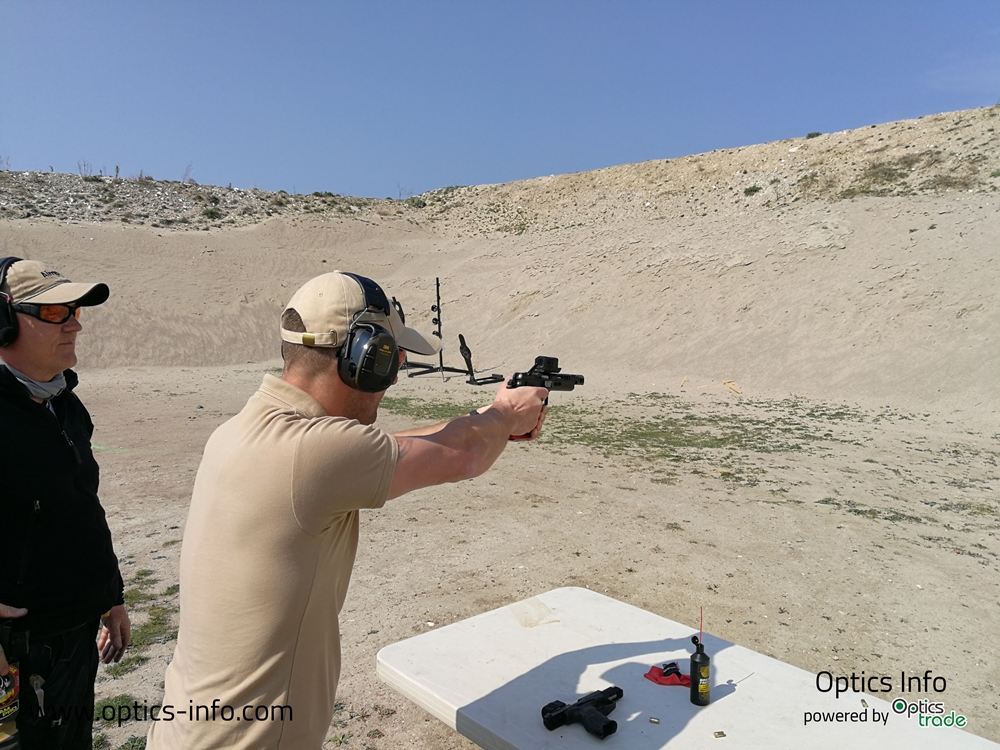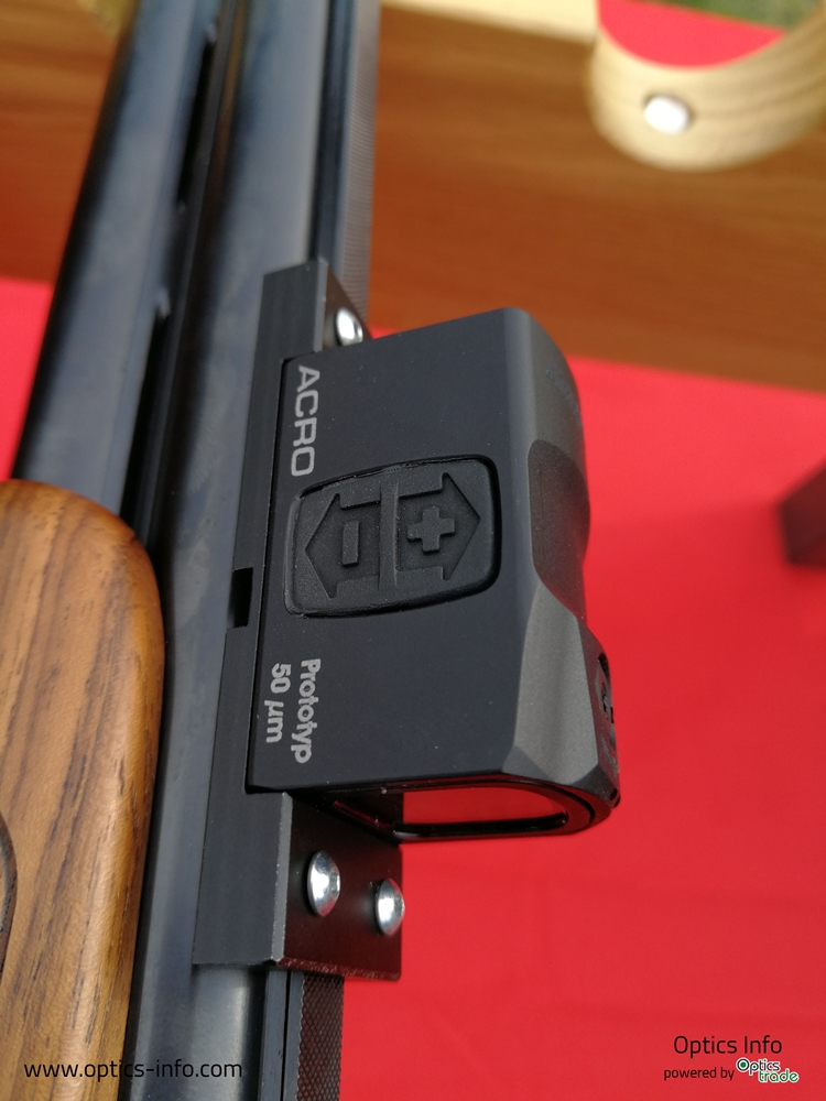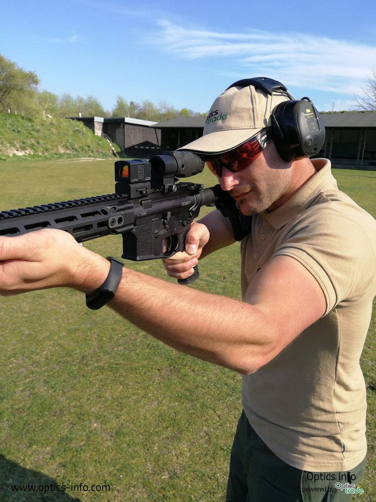 Naslednji zelo zanimiv produkt, ki smo ga imeli priložnost testirati, je novi Aimpoint Acro, ki je v osnovi bil zasnovan za uporabo na pištolah. Na prvi pogled daje občutek, da je pika zelo velika, ampak gre za zelo kompakten in robusten produkt, ki omogoča hitro in natančno streljanje. Streljali smo z različnimi modeli pištol, ko so npr. Glock, Cz 75, Tanfoglio, S & W ipd.
