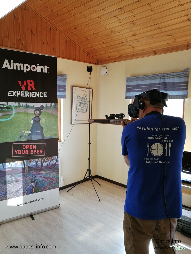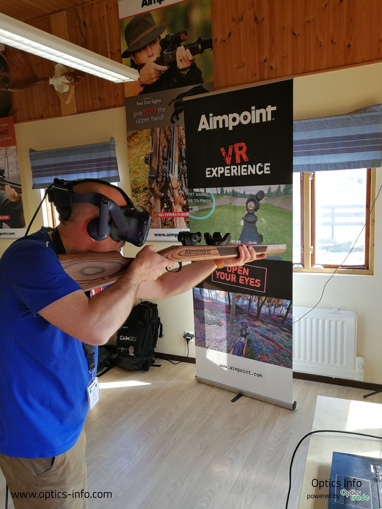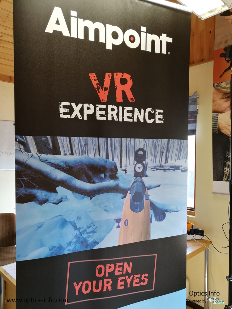Aimpoint je v zadnjih nekaj letih začel z novo dejavnostjo, in sicer z napravami VR. Gre za t. i. obliko računalniške simulacije, pri kateri ima igralec občutek, da se nahaja v umetno ustvarjenem okolju, kjer lahko uporabnik vidi, sliši in občuti okolje, kot da bi bil v njem resnično prisoten. Naprava je sestavljena iz dveh zaslonov (za vsako oko eden), vgrajenih v očala, ki si jih nadenemo na glavo. Senzorji zaznajo vsak premik glave ali telesa, kar povzroči spremembo navideznega položaja gledanja. Podjetje, ki je del družine Sandberg, se imenuje GAIM. Le-to deluje kot ločeni oddelek podjetja AIMPOINT. Te naprave smo prvič opazili na sejmu IWA. Uspeli smo se dogovoriti, da si napravo izposodimo. Napravo smo s sabo vzeli na sejem Lova in Ribolova v Gornji Radgoni, kjer smo zastopali svoje podjetje. Aimpoint VR omogoča veliko različnih iger za različne načine lova – je zelo priljubljena atrakcija za vsakega.