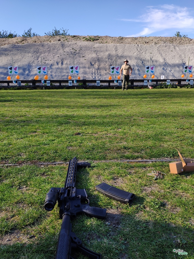 Pomembno je omeniti, da je model ACRO možen tudi za uporabo na lovskih puškah večjega kalibra, različnih lovskih repetirkah ter puškah tipa AR v kalibru 223. Trening, na katerem smo bili prisotni, je obsegal tudi samo nastrelitev in uporabo namenskih tarč. Njihov vodilni trener nas je poučeval o najboljših tehnikah merjenja na premikajoče se tarče in streljanja v kaotičnih razmerah.