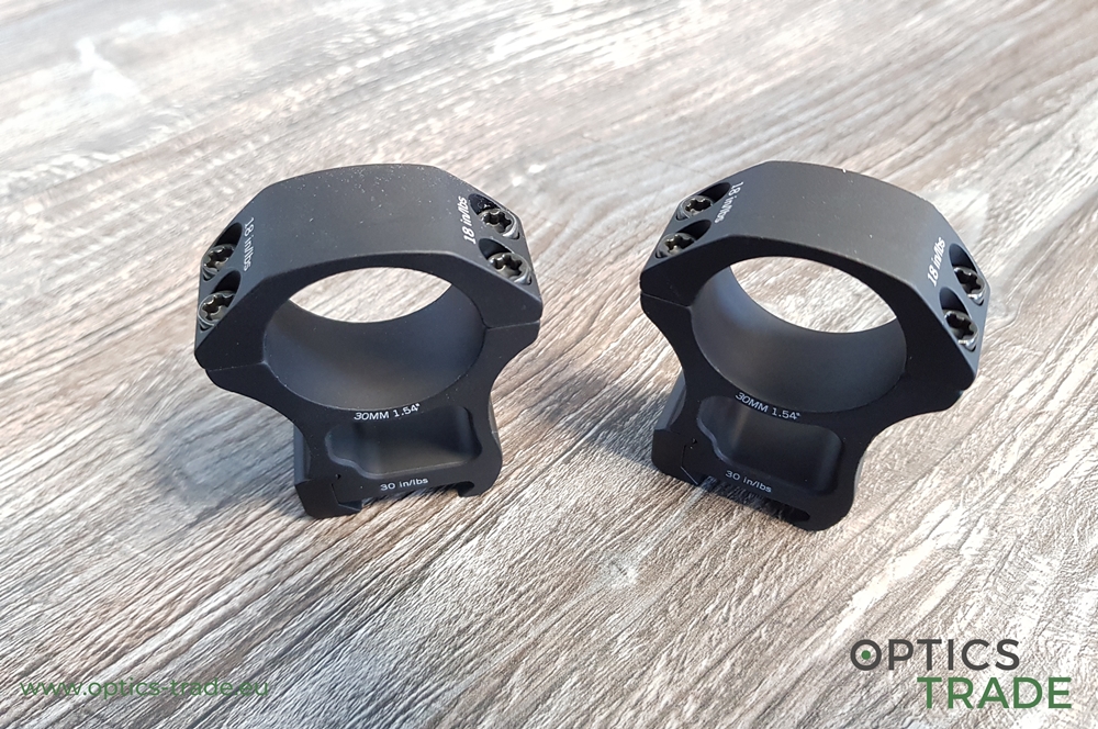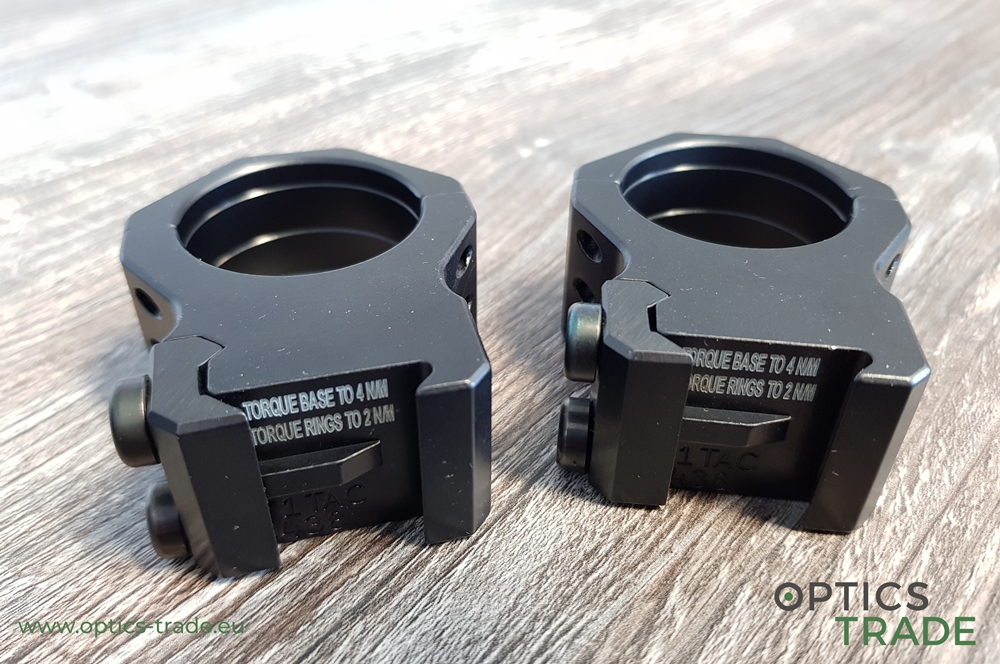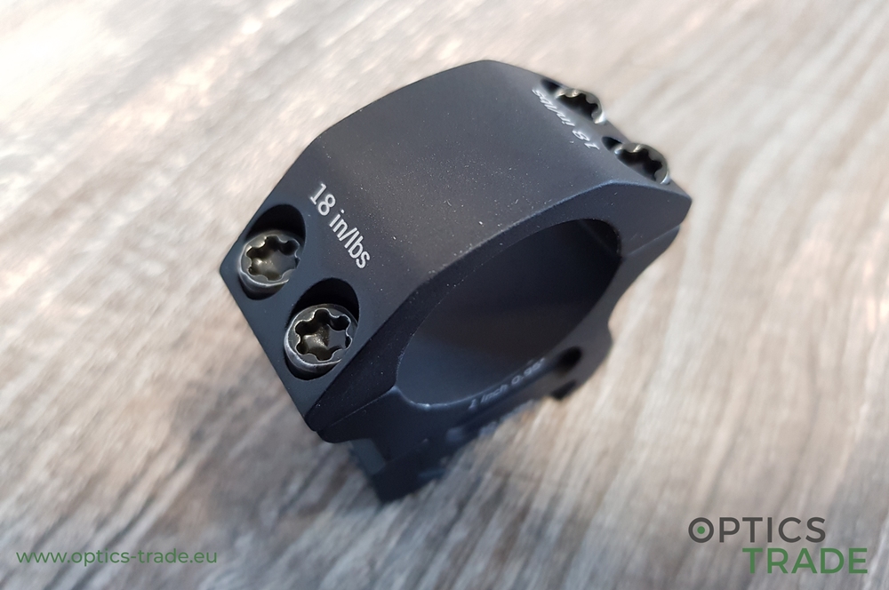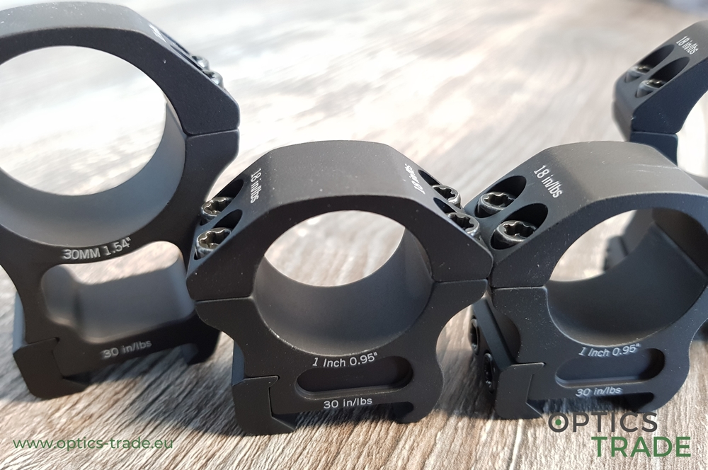 - pri zatezanju vijakov na obročkih in pritrditvi obročkov na ohišje optike 15–25 in/lbs oziroma 1,69–2,82 Nm (Badger 15 in/lbs ali 1,69 Nm, Leupold 15 in/lbs ali 1,69 Nm, Warne 25 in/lbs ali 2,82 Nm, Vortex 20 in/lbs ali 2,26 Nm) pri čemer omenjene sile zatezanja vijakov veljajo za vse obročke enako, ne glede na premer obročka (Ø 25,4 mm, 30 mm, 34 mm, ipd.),
