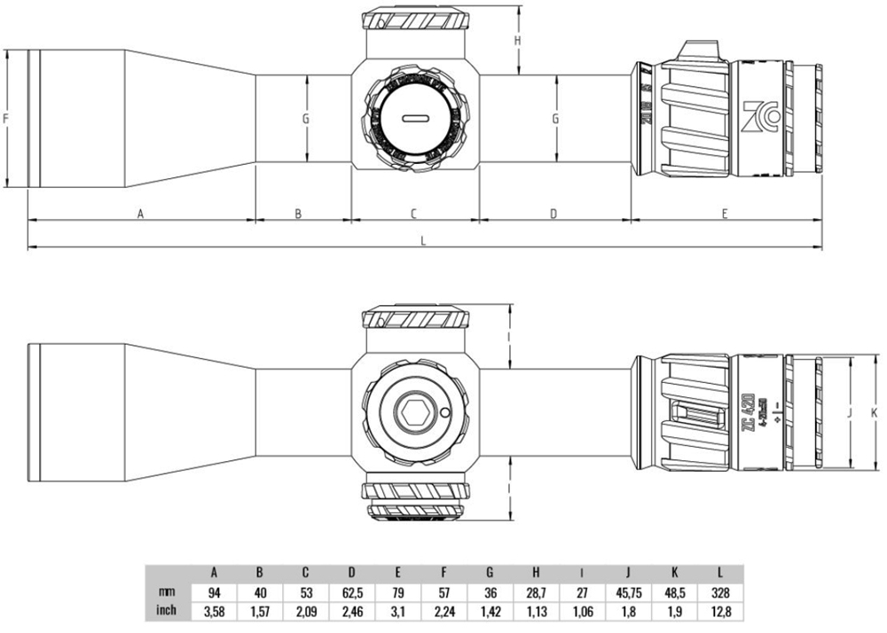ZCO 840 ima 36-milimetrsko optično os za čim večji razpon nastavitve klikov (26 MIL po višini, 16 MIL po smeri). Daljnogled pa je kljub veliki konfiguraciji povečave in široke, 56-milimetrske leče objektiva precej kratek.